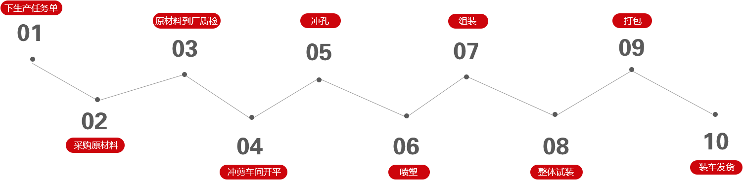 沖剪車間、組裝車間、立柱車間、噴塑車間、試裝、裝車總共25+全程質檢系統(tǒng)