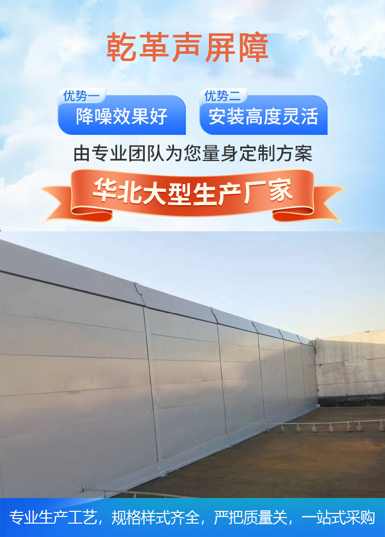 廠區(qū)聲屏障采用混合型聲屏障,頂部為吸聲單元,以下部分為隔聲單元,模塊與模塊之間可以任意搭配,安裝維修方便。合理確定聲屏障的長(zhǎng)度和高度后,可獲得25-35dB(A)的降噪量。結(jié)構(gòu)安全性高,抗自然力和人為破壞力強(qiáng)。具有投資省,施工速度快、景觀作用明顯等優(yōu)點(diǎn)。